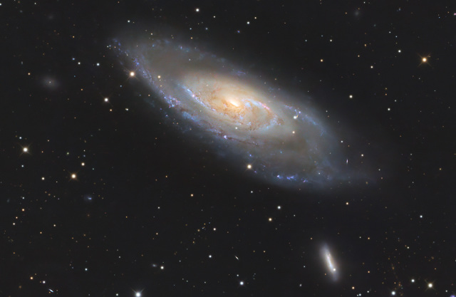 画像処理はさらっと10分程度で終わりです。SCA260の画像は周辺減光が少なく作業は楽です。カメラも冷却COMSはEOS6Dのような癖がないので手間がかかりません。もっと銀河内の彩度を上げても良い感じですが、控えめにしてました。最近、背景の明るさを25-30程度に押さえています。以前は50を基準にしていましたが、なんとなく眠く感じてしまうので、背景を暗くすることでキリっと仕上げるように心がけています。